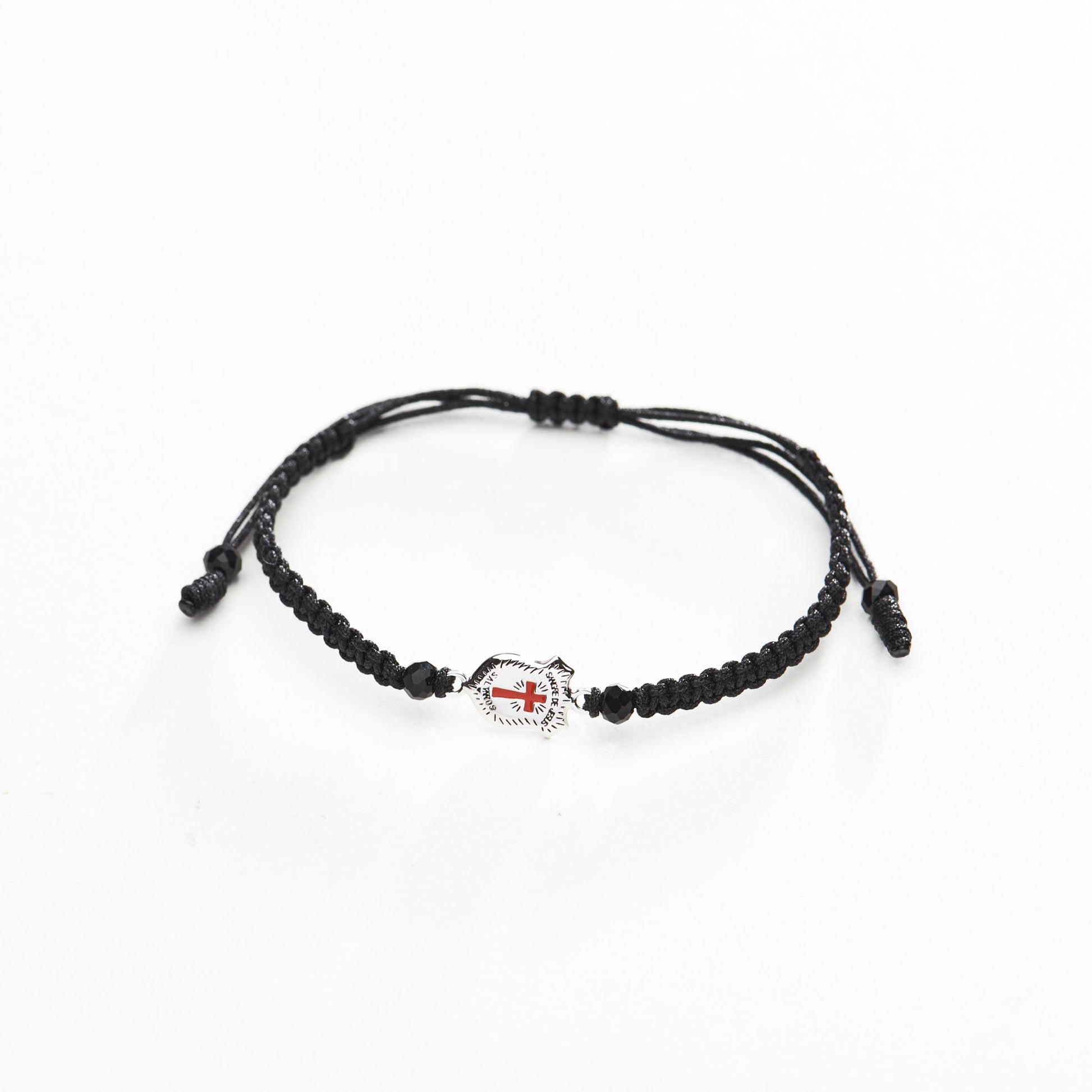 Esta pulsera es una auténtica obra de arte que combina la artesanía de alta calidad con un profundo simbolismo católico. Está meticulosamente tejida a mano y en el centro de esta pulsera tejida, se encuentra un imponente escudo de la Preciosa Sangre de Cristo, elaborado en plata 925. El escudo está finamente detallado, mostrando la representación de la Cruz esmaltada en color rojo que simboliza la Sangre de Jesús nuestro Señor. En la parte trasera la cita del Ex 12,13 “Yo veré esta Sangre y pasaré de largo.