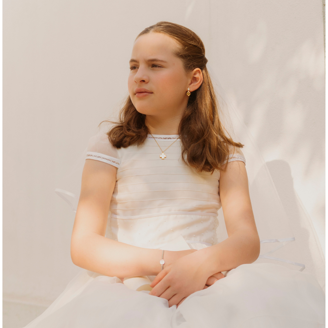 La Medalla está realizada en plata fina .925 con baño de rodio. Delicadamente enmarcada con mini circonias.