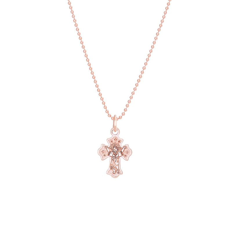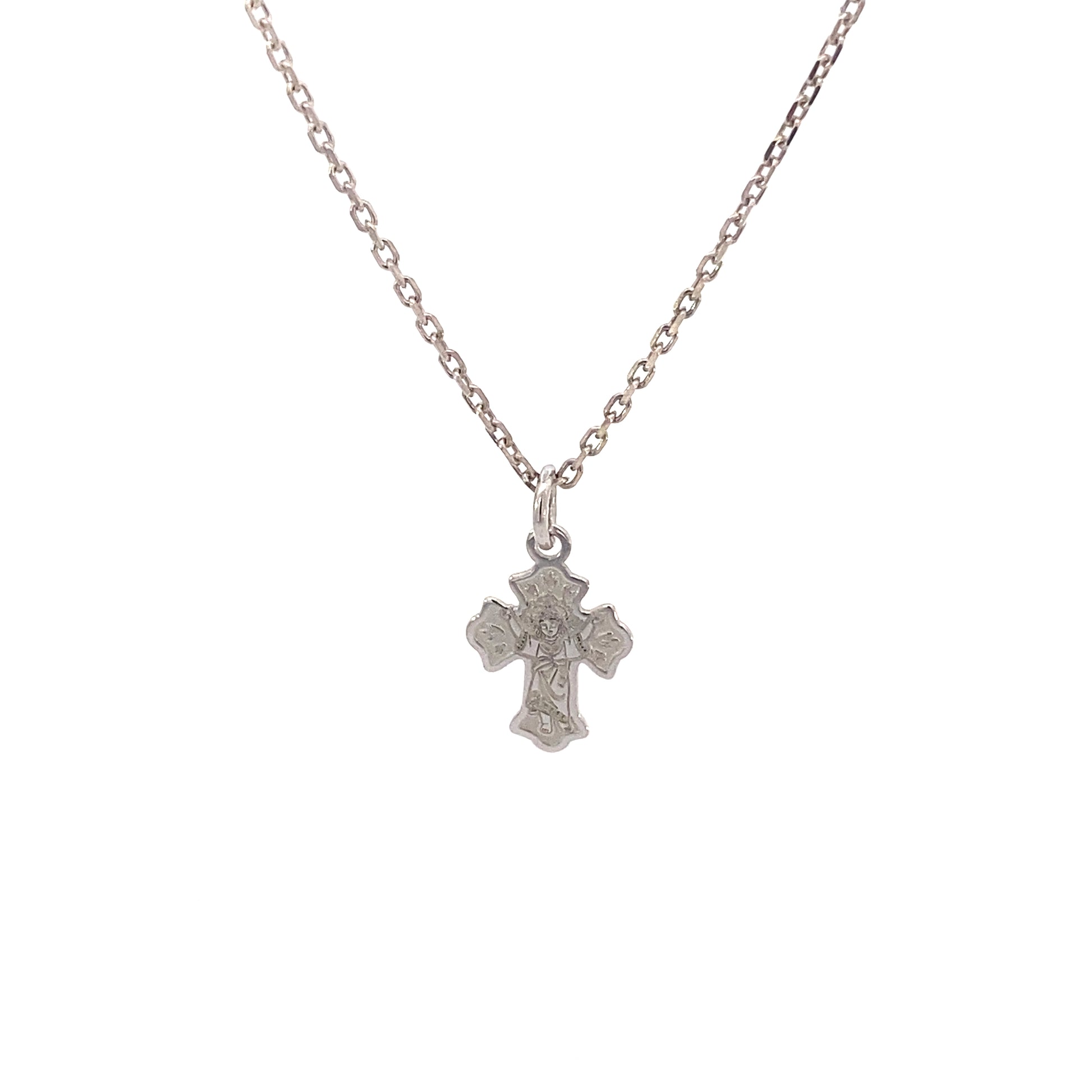Cross with The Divine Child Jesus, made in fine silver. 925 with 14k rhodium gold plating, depending on the color finish of the piece.