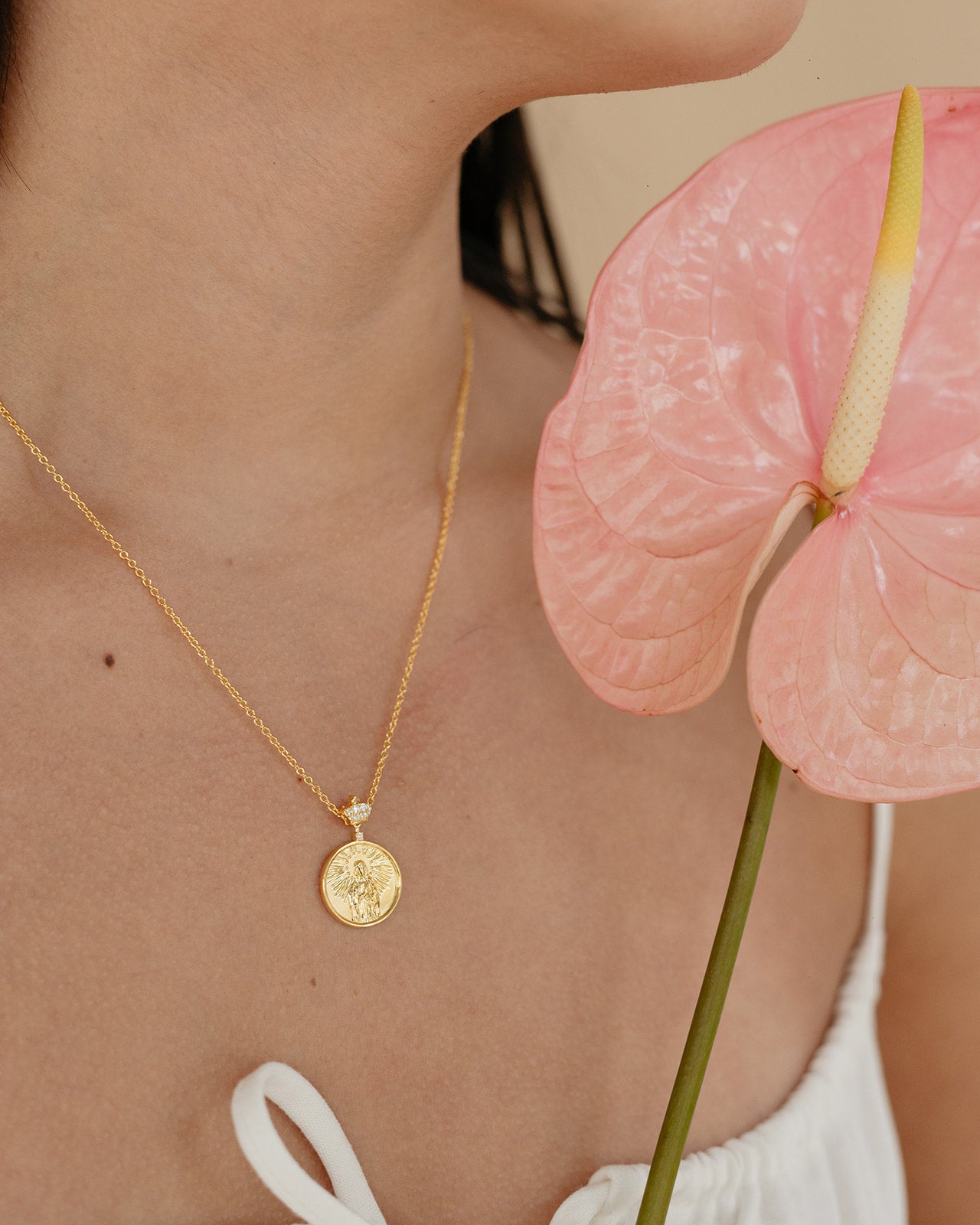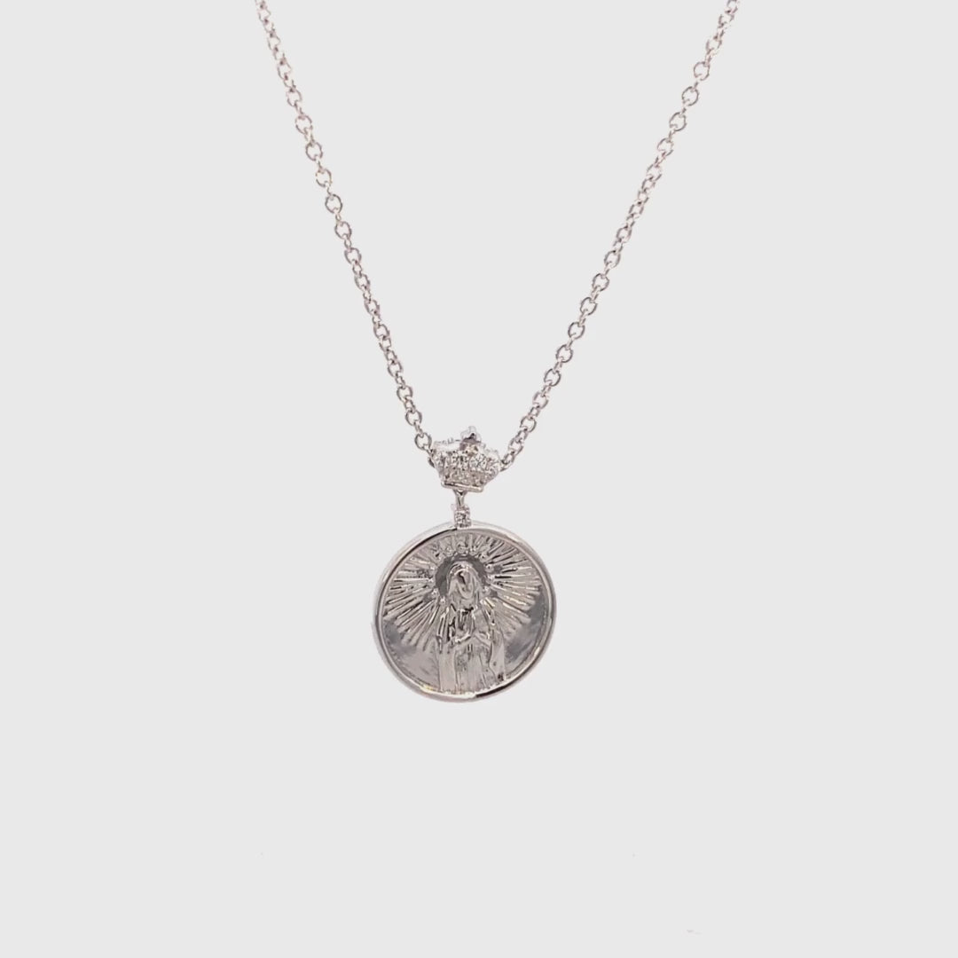 La Virgen de Lourdes es conocida por su aparición en Lourdes, Francia. La corona de circonias añade un toque de brillo y sofisticación, realzando la belleza de la medalla. Esta combinación de materiales y diseño hace de esta joya tanto un símbolo de fe como una pieza de accesorio atractiva y versátil. Por un lado de la medalla resalta el rostro de la Virgen de Lourdes y por el otro la escena de la aparición a los pastorsillos en la cueva.